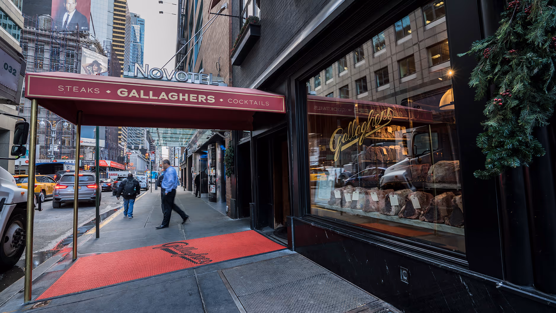 Founded by former Ziegfield girl Helen Gallagher and the colorful gambler and sports enthusiast Jack Solomon, Gallaghers opened as a speakeasy and steakhouse in 1927. At that time, the height of Prohibition, a good stiff drink and a great steak were hard to find in New York – except, of course, at Gallaghers.