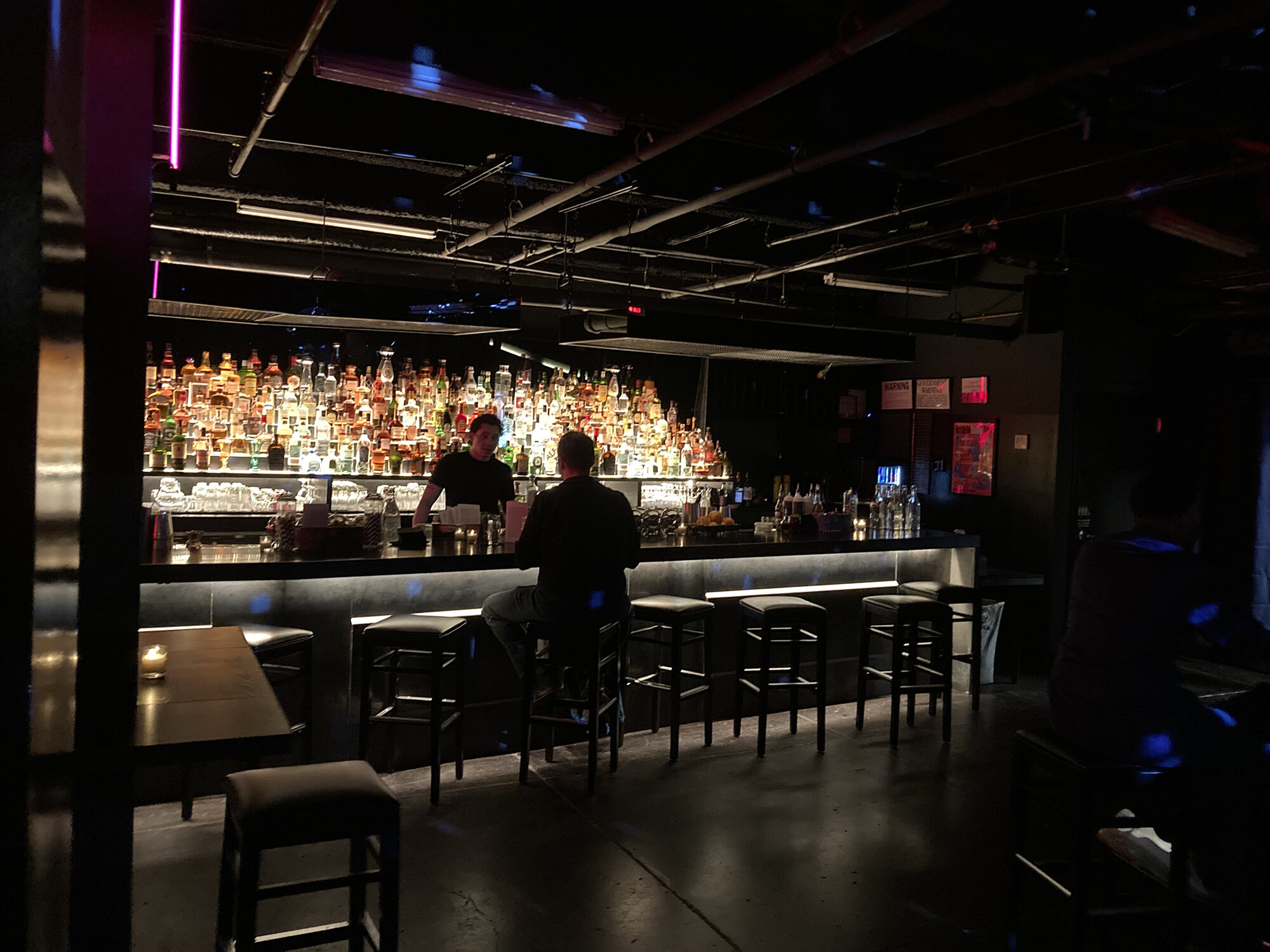 One of Times Square's more secretive locations, Nothing Really Matters is hidden just inside the downtown entrance to the 50th Street 1 train. Journey under the Duane Reade and through a darkened storefront to discover a neon-illuminated, fully stocked bar.