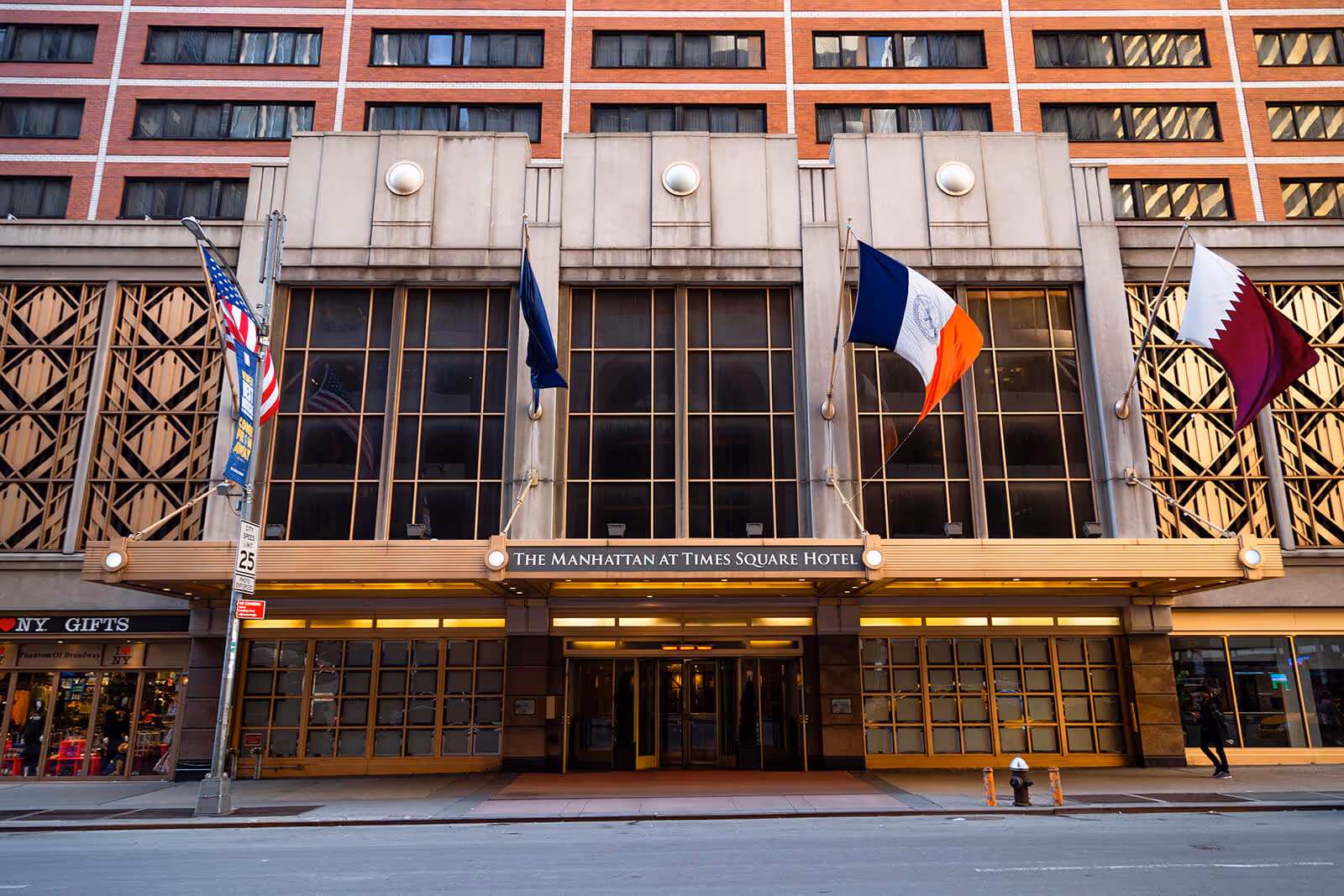 The Manhattan at Times Square Hotel provides comfortable NYC accommodations and deluxe guest amenities to create an ideal home-away-from-home setting that's well suited for both business and leisure travelers. The hotel is located in the heart of Manhattan, just blocks from top New York City attractions and activities, shopping, dining and more. Dual-pane windows, luxury linens and plush pillow-top mattresses create a tranquil, smoke-free retreat overlooking the bustle and bright lights of New York City.