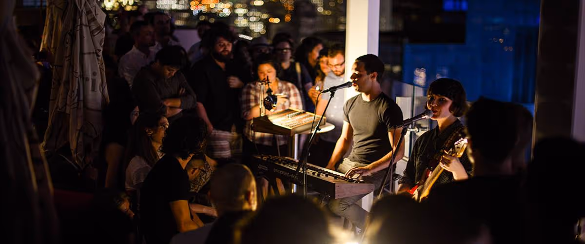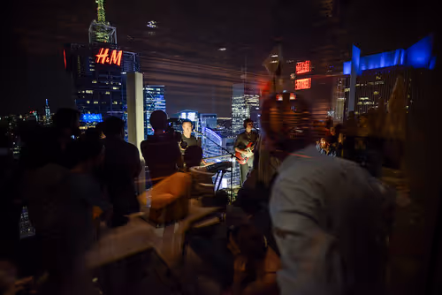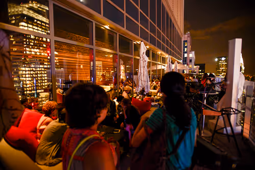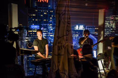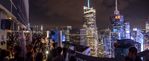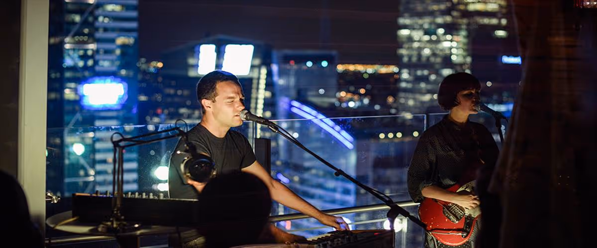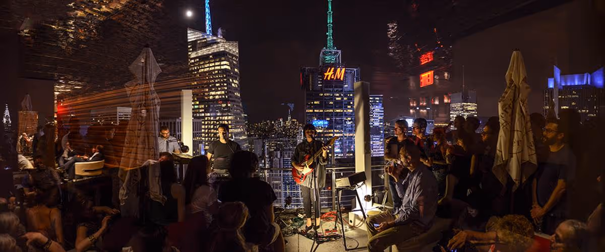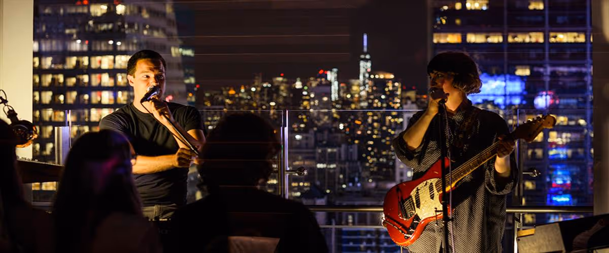 California-based band Bouquet took their audience above the clouds, on the Hyatt roof deck, to serenade them against the city skyline. Bar 54 is New York City's highest rooftop lounge with river-to-river views.