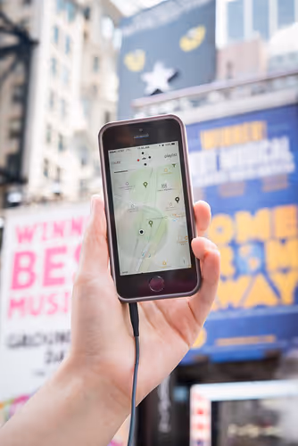 As you turn on the app, plug in your headphones and walk through Times Square, a voice will accompany your wanderings with poems about searching for freedom, reflections on navigating the city, and cross-cultural myths about the cardinal directions, woven through with quotes from and reworkings of Walk With Me, the African-American spiritual turned Civil Rights freedom song. The voice in Compass Song is always underscored by a drone, a unique harmony that translates the latitude and longitude data for Times Square into sound and modulates as you walk north, south, east, or west. Interspersed with this are vocal performances of the sounds of Times Square, as if the city itself is singing to you.