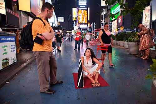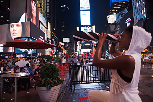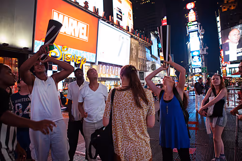 Performers were stationed around Times Square with specially calibrated telescopes that allowed for an utterly unique stargazing experience in the heart of New York City.