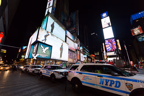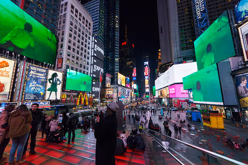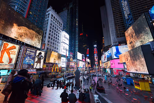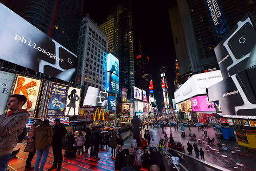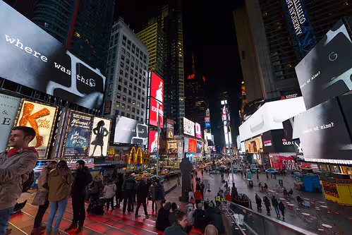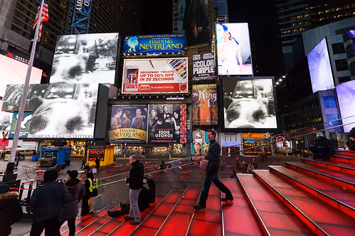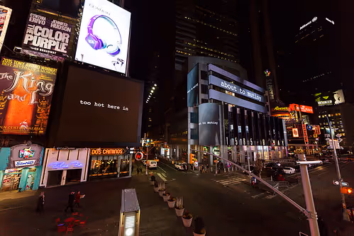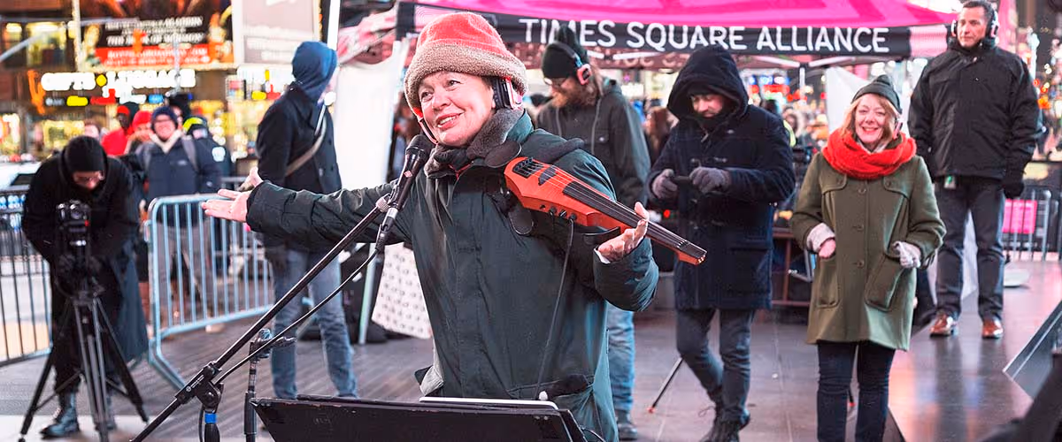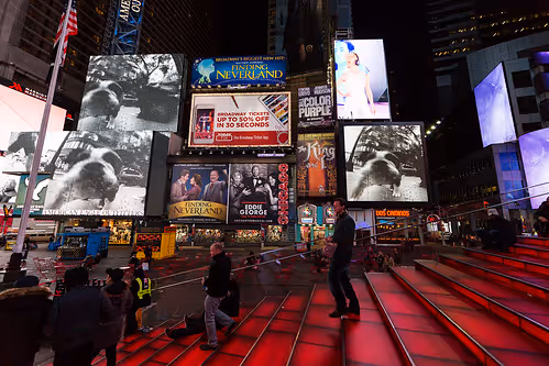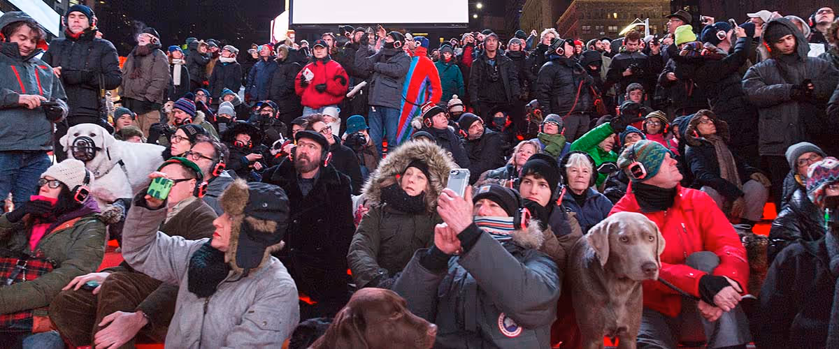 A special concert was held with Laurie Anderson for her Midnight Moment, Heart of a Dog on Monday, January 4, 2016, at 11:30 pm. In honor of the 9/11 first responder dogs to whom her film is partly dedicated, this unique performance by Laurie Anderson was transmitted to "silent disco" headphones for humans and low-decibel speakers for dogs. The event began at 11:30pm to midnight to accompany the video playing on the electronic billboards from 11:57 pm to midnight.