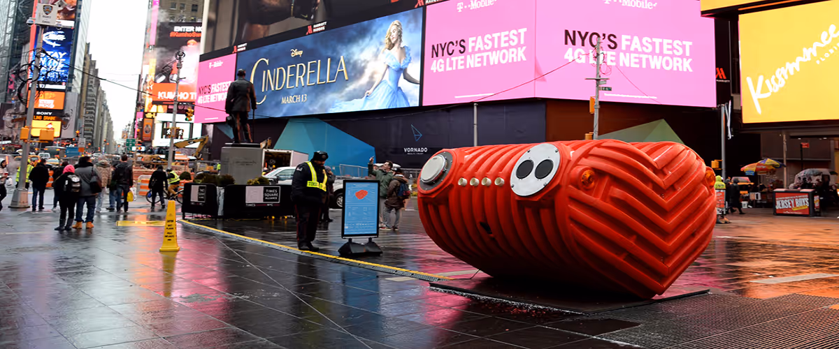 Brooklyn-based design studio Stereotank’s design was selected for the 2015 Times Square Valentine Heart. Times Square Alliance partnered with The Architectural League of New York and invited architecture and design firms to submit proposals for a public art installation celebrating Valentine’s Day in Times Square. For the 2015 competition, the distinguished Selection Panel selected Stereotank's HeartBeat out of seven design proposals.