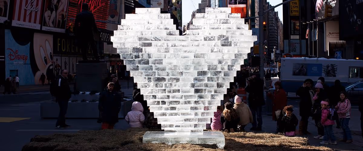 The Valentine Heart sculpture was constructed by Okamoto Studio, a NYC-based artist collective founded by the father-son team of Takeo and Shintaro Okamoto, which has produced one-of-a-kind sculptures in ice that have been installed in venues from the Rockefeller Center to the runways of Fashion Week at Bryant Park. The structural engineering firm was Robert Silman Associates, which had participated in arts related projects throughout New York City. The lighting, a key element to bringing the sculpture alive in the evening, was by Tillett Lighting Design Inc., an award-winning firm specializing in the illumination of landscape and public space.