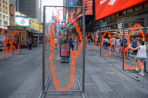 Arlés del Rio's Nearness dealt with restrictions, distance, the forbidden and achieving longings despite impediments. The 17 sculptures consisted of copper and steel panels cut out with human silhouettes of various sizes. These panels invited participants to get close and even step through, representing metaphorically the social, political, cultural and personal barriers, among others, that may keep us away from one another.