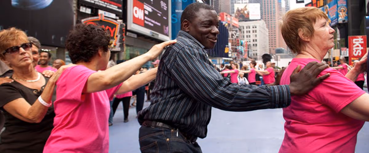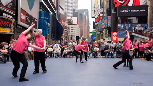 Roundup -- part performance / part workshop -- premiered work with DVP’s multigenerational company directed by Naomi Goldberg Haas, featuring contemporary dance driven by the diversity and energy of Times Square. DVP was joined by members of Project FIND Woodstock Senior Center in a festivity of idiosyncratic movement.
