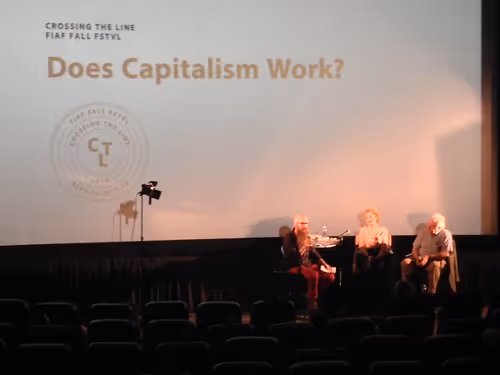 American artist Steve Lambert continued his examination of the impact of capitalism on American society in a unique dialogue with economics theorist and author Richard D. Wolff and psychologist Harriet Fraad, whose penetrating insights into this complex question are lucid, accessible and revelatory.