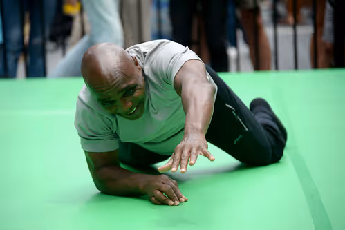 The video display content was the result of a public-participation performance. In the first phase of the project (July 24-27, 2014) the local Times Square community, distinguished New Yorkers and neighborhood pedestrians were invited to crawl over a green screen surface while being captured by an overhead video camera. The result was a dynamic video animation with both realistic and abstract forms that were screened during Midnight Moment in Times Square September 1-30, 2014.