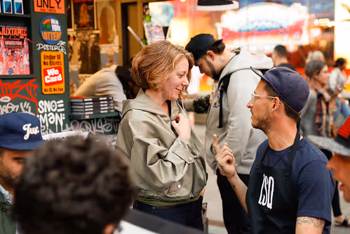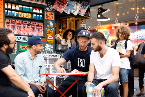The T.SQ Newsstand also featured surprise visits from some of the publication’s contributing artists, including Jason Polan, Jean Jullien, Cheryl Dunn and more. The artists were on-hand to sign their work, sell limited edition prints, books, and rare pieces from their personal archives. Artist residency announcements were made on the day of their appearance.