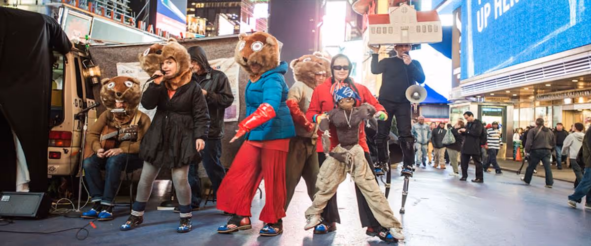 In affiliation with the Creative Time Summit, The Gopher Plan was a twenty-five minute-long puppet show musical for all ages about ending veteran homelessness. A formerly homeless veteran performed the show from a VW van—his residence—while he prepared to travel to Washington D.C. to present a solution to veteran homelessness to the President. Like an old style traveling marionette show, this musical production unfolded in Times Square for all audiences and concluded with a Q&A with the performers. This production brought a challenging subject packaged as engaging artwork to international audiences.