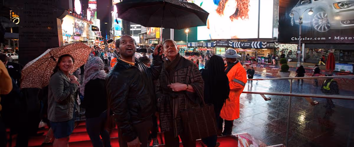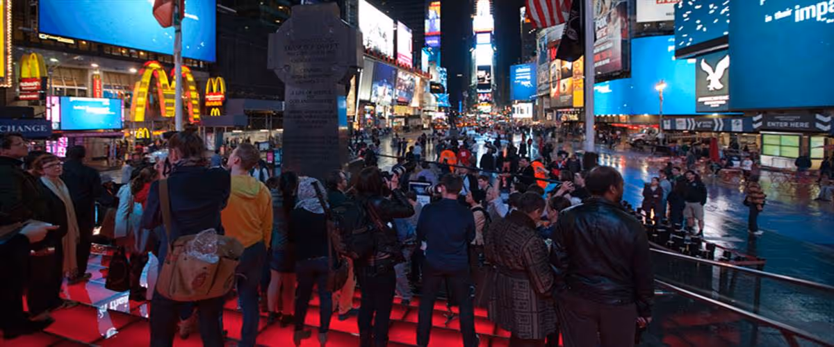 Audience gathered at the Red Steps on Duffy Square, Broadway between 46th and 47th Streets.