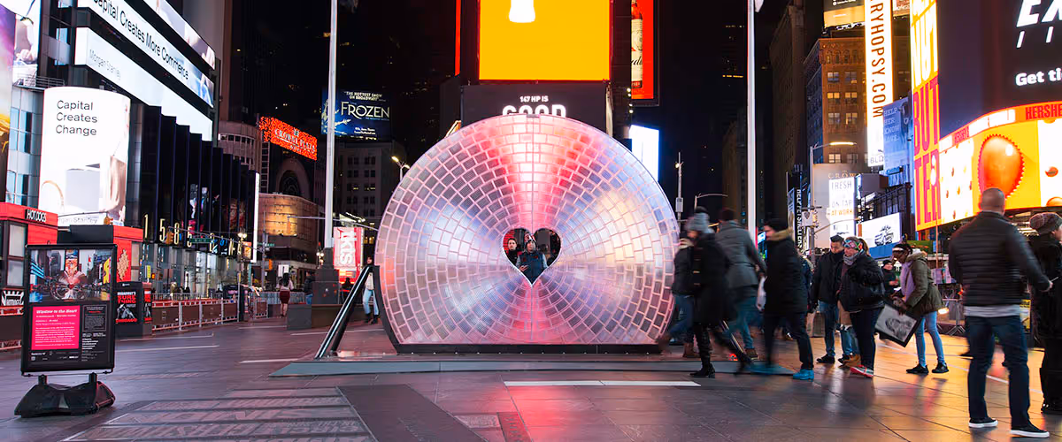This marks the 10th anniversary of the Times Square Valentine Heart Design Competition, an annual event where Times Square Arts invites architecture and design firms to submit proposals for a public art installation celebrating Love in Times Square in February.